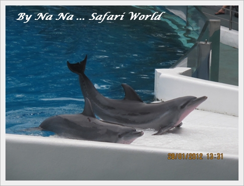 ในที่สุดก็ถึงโชว์สุดท้ายที่เราตั้งใจจะดูก่อนที่จะไปที่ซาฟารี ปาร์คกันต่อ นั่นคือการแสดงของปลาโลมา ก่อนเข้าก็ถ่ายรูปด้านหน้าก่อน